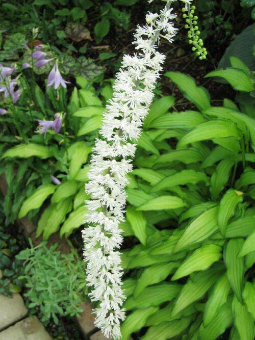 レンゲショウマのショウマは、このサラシナショウマと葉や全体の姿が似ているからだそうですが、花は全く違いますね。こちらでももうすぐ咲き始めると思います。これも蝶が沢山寄ってくるお花ですね。