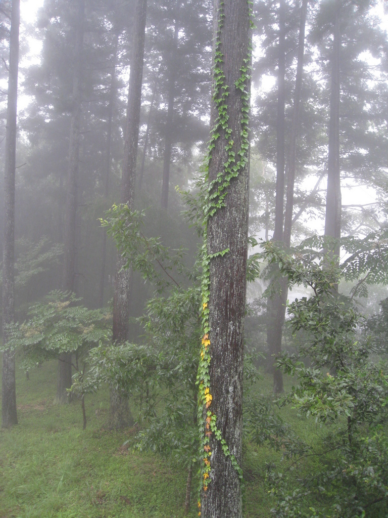 この写真が奥行きが感じられて一番好きです。朝もやってほんとに気持ちがいいですね。ツタモミジも紅葉が始まりかけていますね。