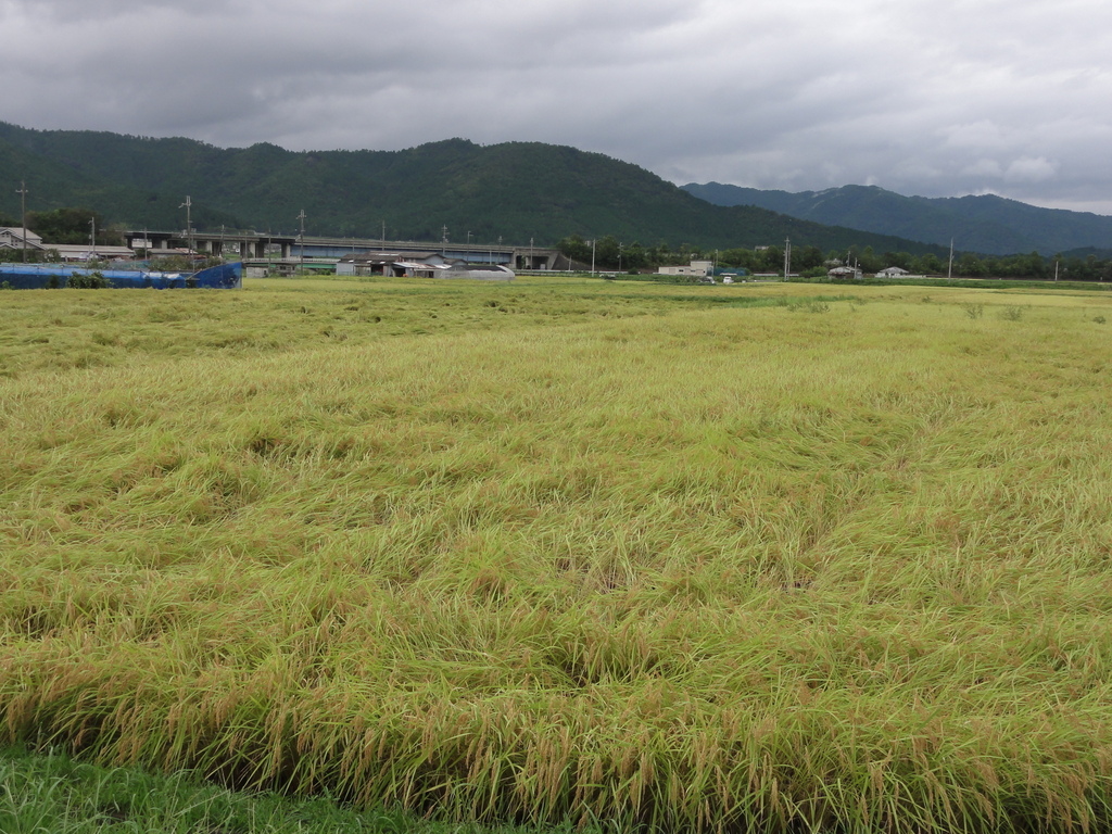 刈り取り前の稲はほとんど倒れてしまいましたね。水に浸かっていなければいいのでしょうが、水没したところは全滅でしょうね。災害はほんとうに恐ろしいです。