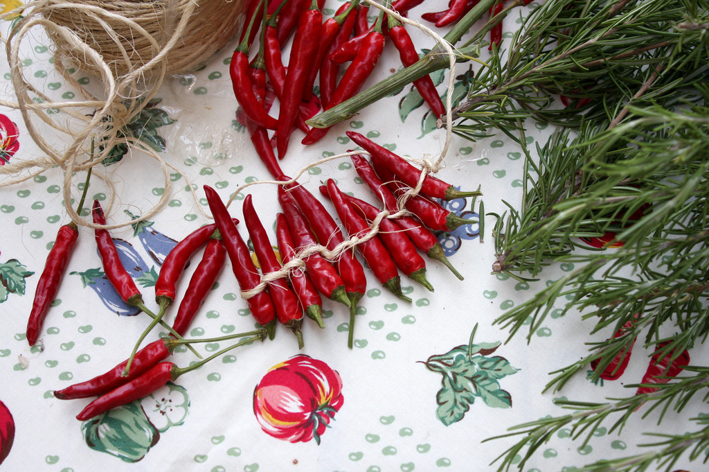 お台所に赤い唐辛子が下がっていると、元気が出ますね!