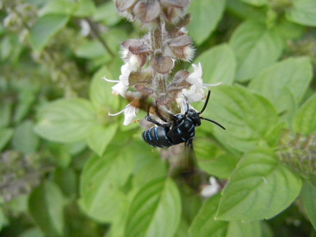 この蜂が普通に見られるなんてうらやましい。小倉で10年ぐらいお庭をやっていましたが、この蜂には全く気がつきませんでした。