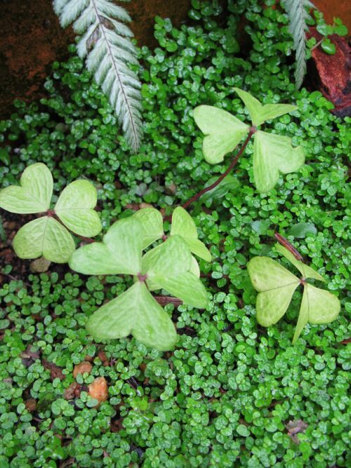 ベビーティアーズのグランドカバーに勝手に生えてきたオキザリスですが、とても可愛くコラボしております。