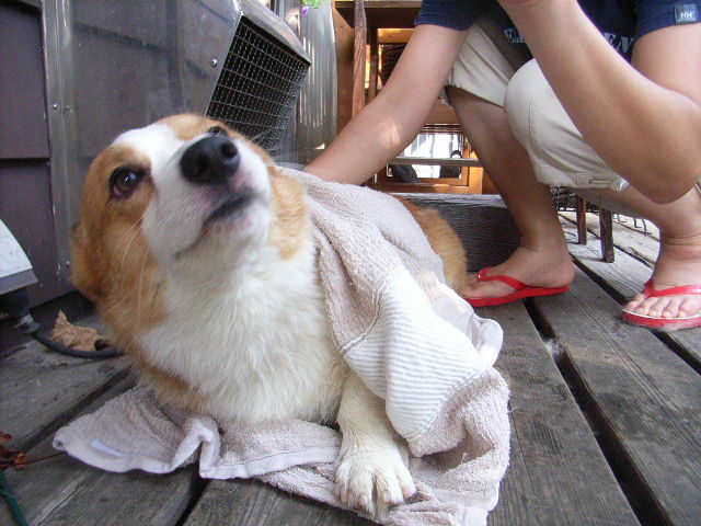 演技派ですね^^ うちのワンコも今日はお風呂に入れてあげなきゃな~。