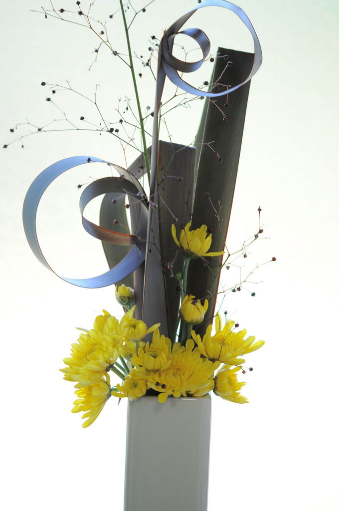 くるくる丸めた葉っぱ、素敵です(*^^*) 菊がオシャレに見えますね♡