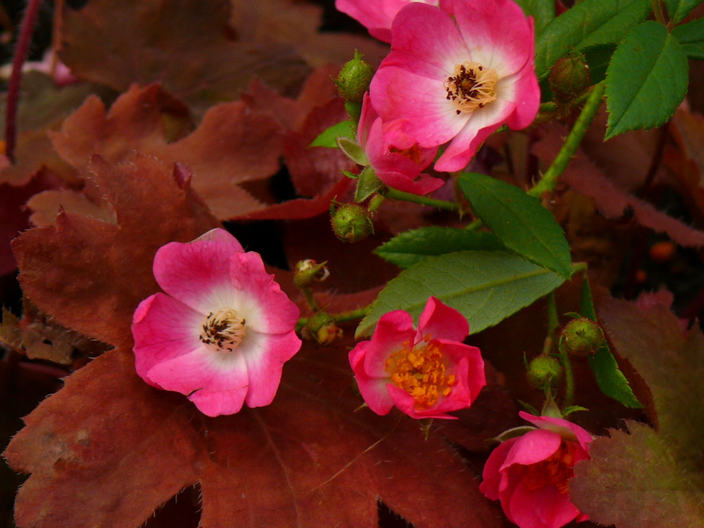 ヒューケラの銅色にピンクの花、すてきな色合わせですね(*^^*) この感じ、好きです♡