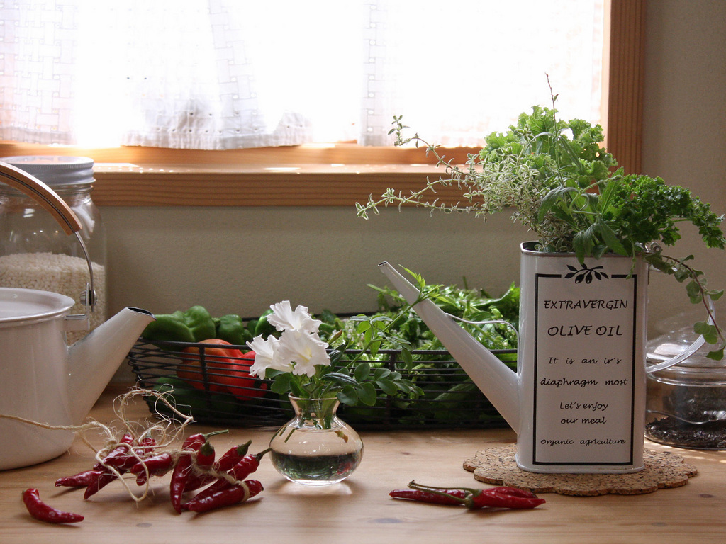 オシャレですね~(*^^*) 私もキッチンにちょこっと花や緑を飾るのが好きです。落ち着きますよね^^