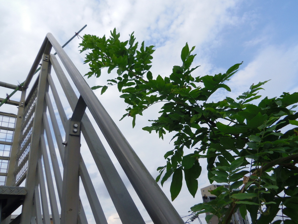 夫が屋上にのびる暴れ者の藤を誘引したのですが、完成予想図が伝わってきません。隣の奥さんにも「ふじ、どうしちゃったの?」と言われるし‥
