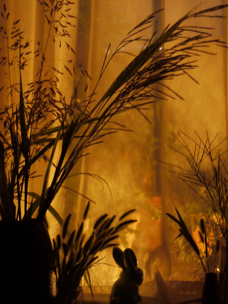 エノコログサ(だと思います)がふわふわといい感じですね。シルエットのお月見、面白いです。