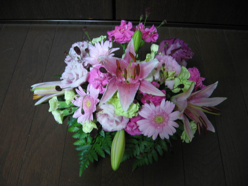 月2回宅配してくれるお花屋さん。今日はオリエンタルリリーでした。他のお花は花屋さんで買ってきました。豪華にできました。