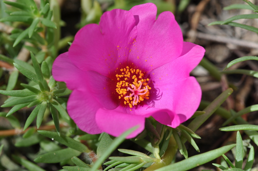学名はポーチュラカ・グラディフローラ。 カメラでのぞいて発見できることが多くて、感動倍増です(*^^)v