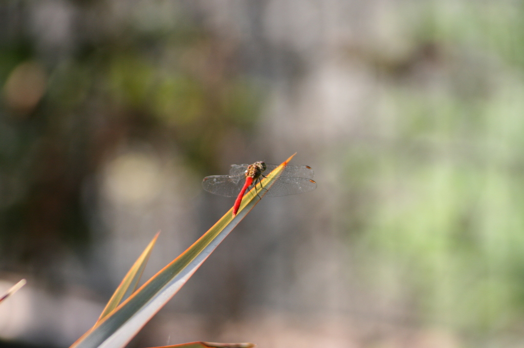 とがった葉の先に赤とんぼがとても絵になりますね!どこに飛んで行こうか考えているのでしょうか・・・