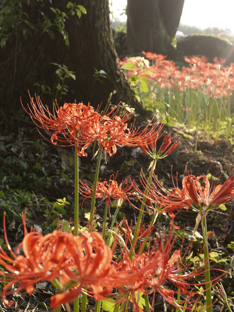 樹の下に群れてる感じがステキです。彼岸花ってなんでこうも形も色も綺麗なんでしょうね。