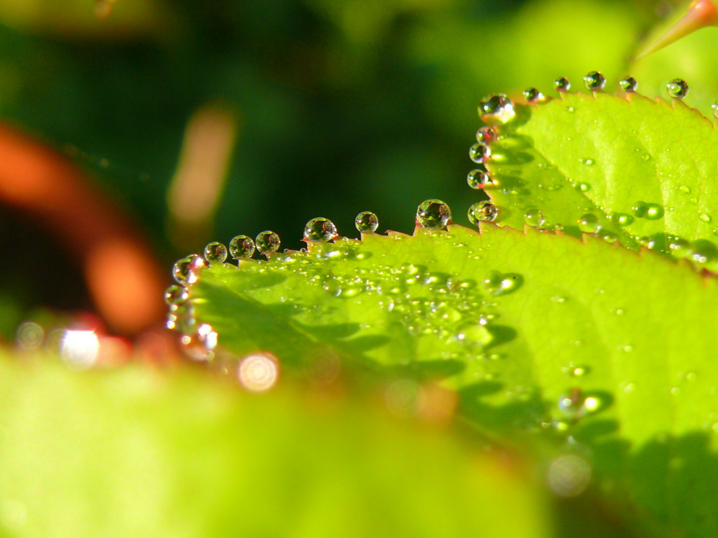 すごい!!葉っぱにこんなにうまく滴がついていて、しかもこんなにアップで撮れるなんて、本当にすごすぎます。私は、こんな風に滴がついていることに気が付いたことさえありません。本当に宝石ですね!