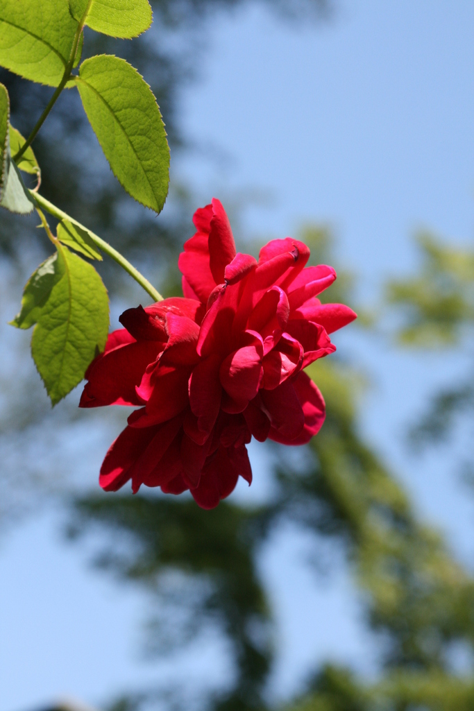 真っ赤な薔薇、青空に映えて綺麗ですね!
