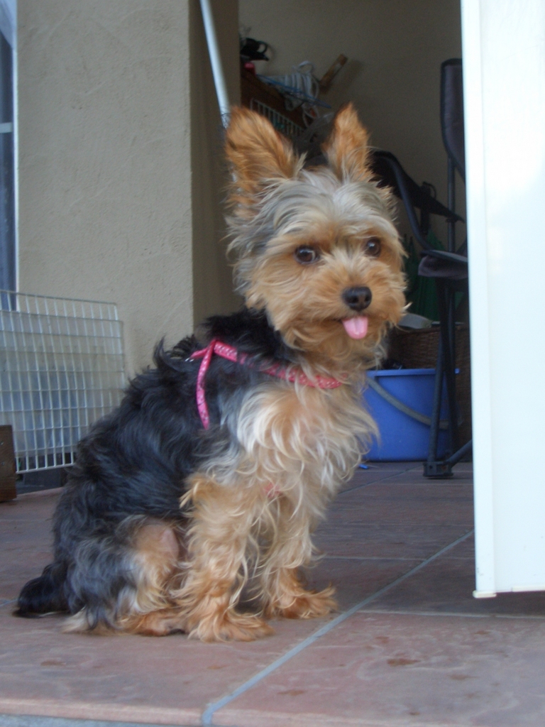かわいくベロが出てますね(*^^*) 朝のおさんぽかな?かわいがってくれる優しいパパとママがいていいですね~!