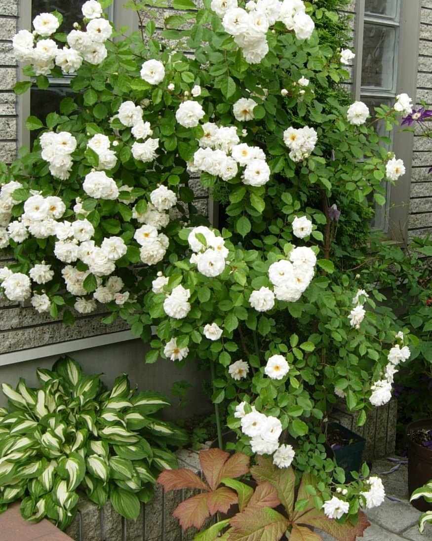 水遣りが大変です。ヤグルマソウの寄せ植えで、鉢を隠しています。