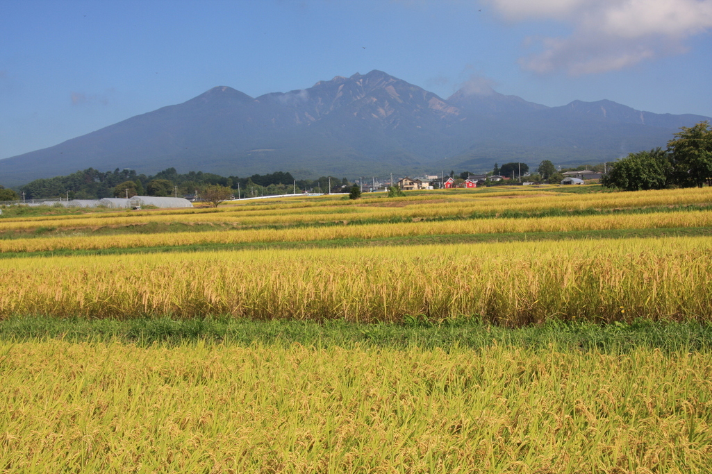 実りの秋ですね。背景の山は八ヶ岳でしょうか。