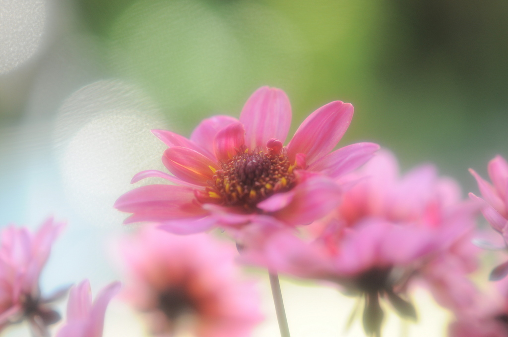 一見するとコスモスのように見えますね。とってもやさしい写真ですね。
