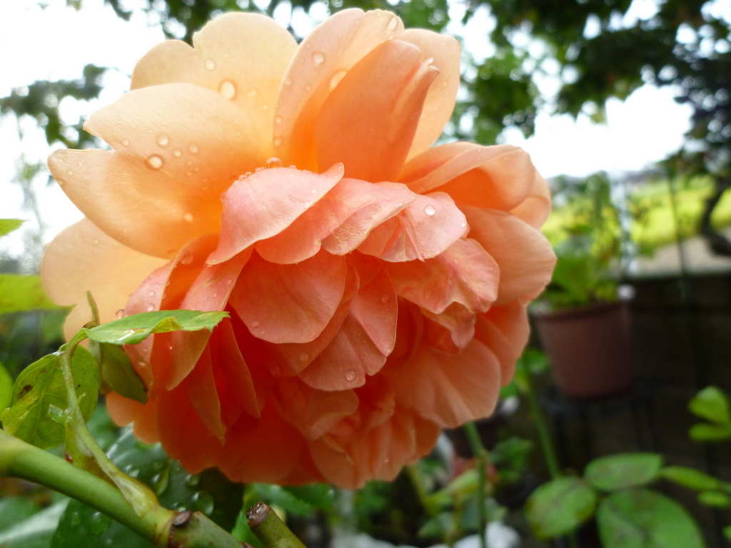 色がとても綺麗、なんとも言えない独特な色合いを出しています。雨風に打たれ大輪が重そうですね(^_^;)がんばれ~