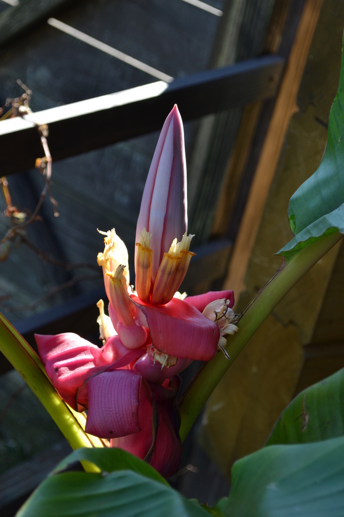 ピンクバナナの花です。試しに植えてみたら・・・・・南国感出してます。