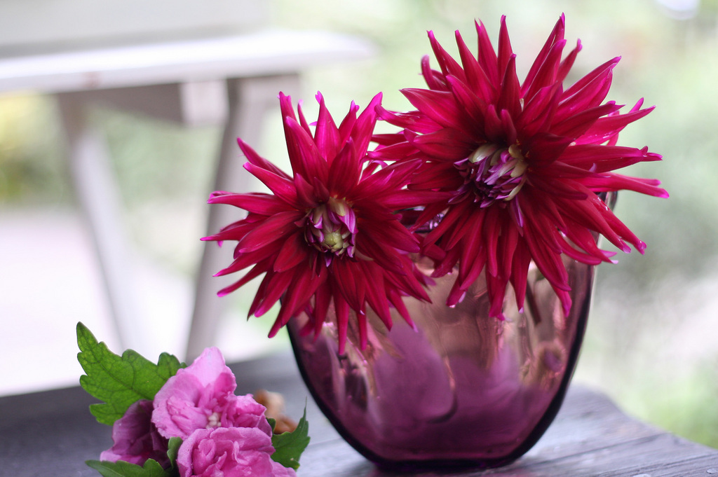 カクタス咲きの花びらを強調するためシンプルに。アレンジとも言えません。