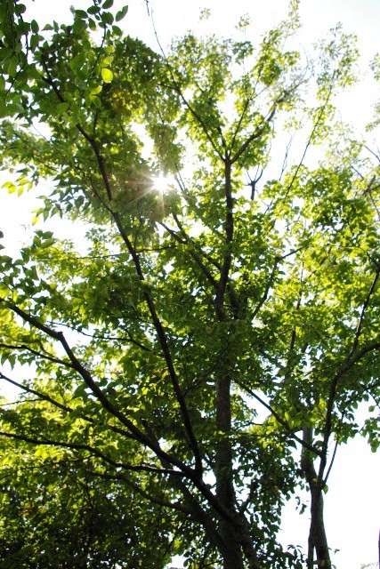 立派な木ですネ。葉っぱの間から太陽が輝いて・・・ホントにまだまだ夏ですね^^; はやく涼しくなぁれ~!