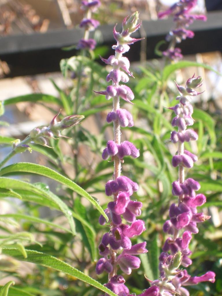 メキシカンセージです。クーチャンさん、有難うございます。朝日の写真と同じ花です。おかげで名前を思い出しました。(^_^;)