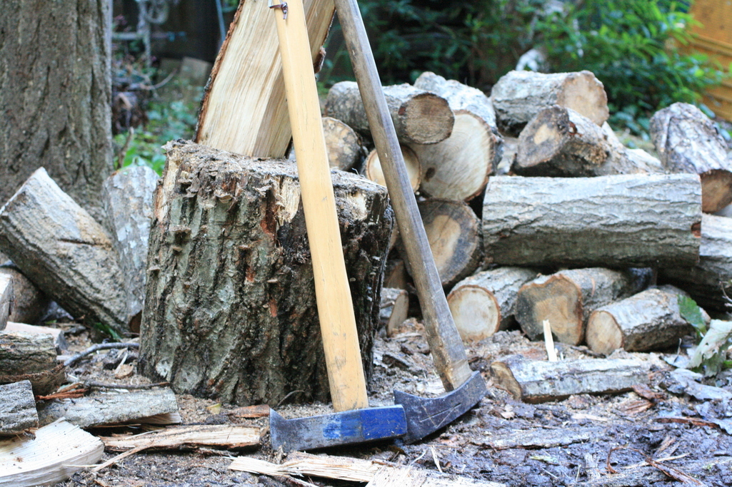 お疲れ様でした(*^^*) 仲良くおかれた2つの薪割、仲良し家族を想像して笑顔になります^^!