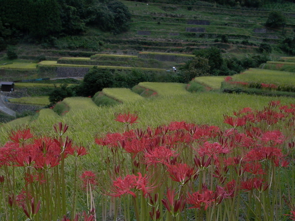 棚田と彼岸花、日本らしい風景でとても美しいですね!素敵です。