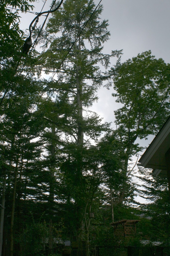 これは立派な大木が何本も それにパーゴラも見えます。素敵なお庭ですね。羨ましい限りです。(^_^;)さすが軽井沢、環境も良いですね。