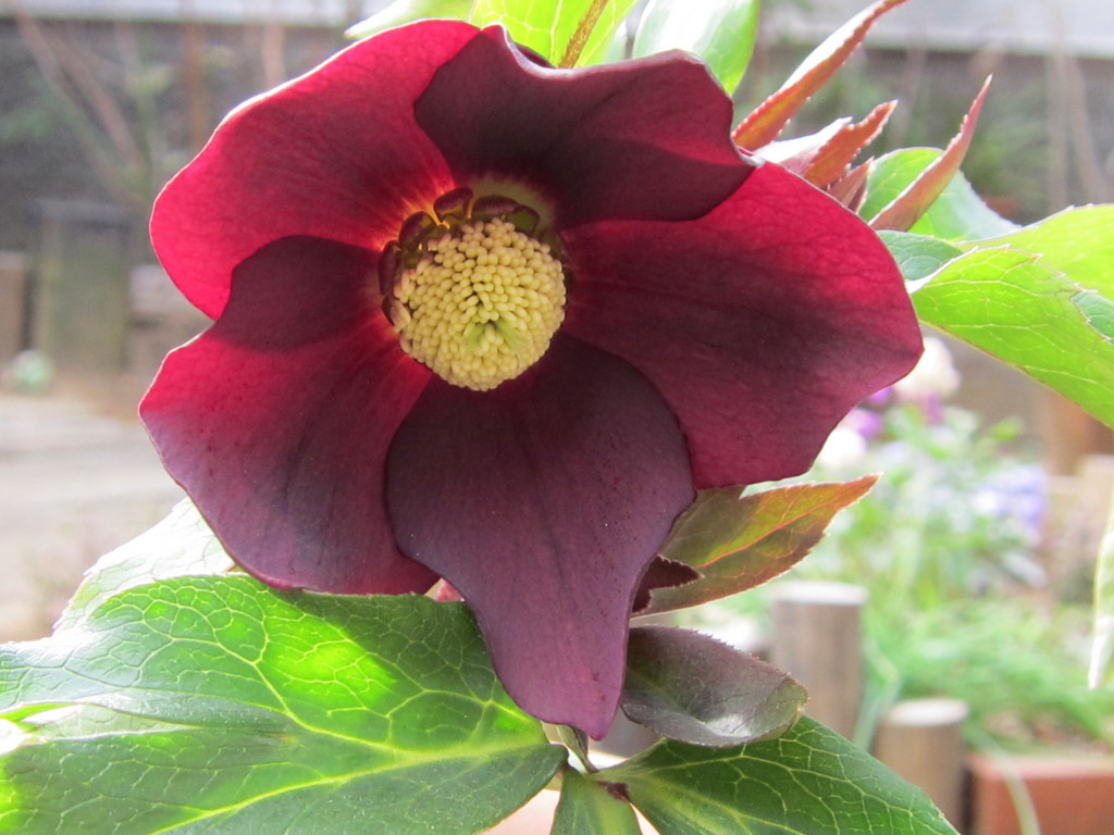 この冬最初に咲いたクリスマスローズです。深みのある赤が気に入ってます。