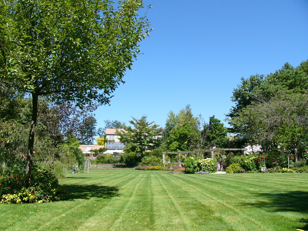 お庭の芝生越しに建物を見たところです。