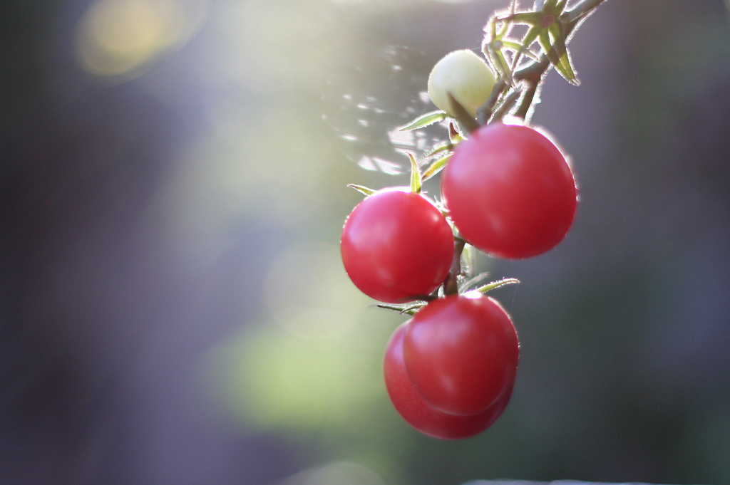 ぼやけた光に鮮やかトマト、とてもア-トな感じがします。