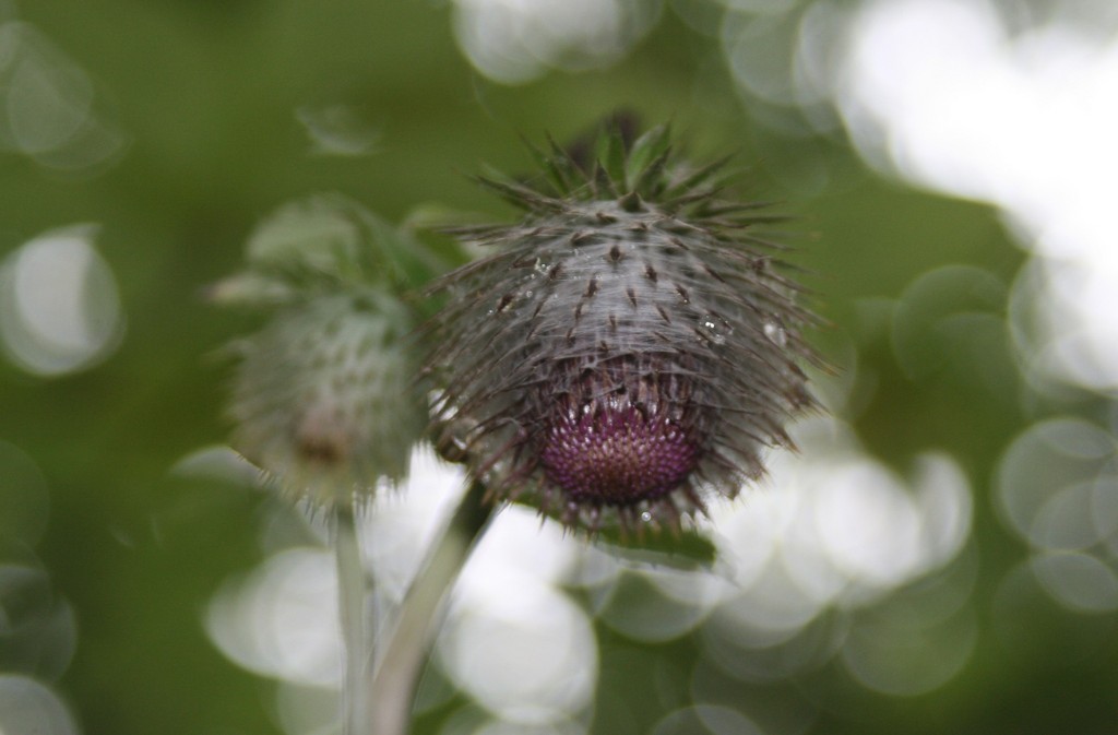不思議な花ですね。アザミのような・・・。がくに蜘蛛の巣のような毛が?なんだか「宇宙戦争」にでてくるメカのような蕾ですね。(^_^;)