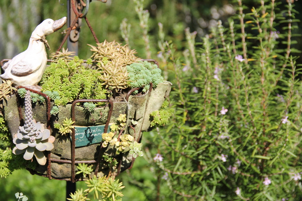 かわいらしい寄せ植えですね。ワイヤーのサピと多肉植物がまた何ともいえず合いますね。