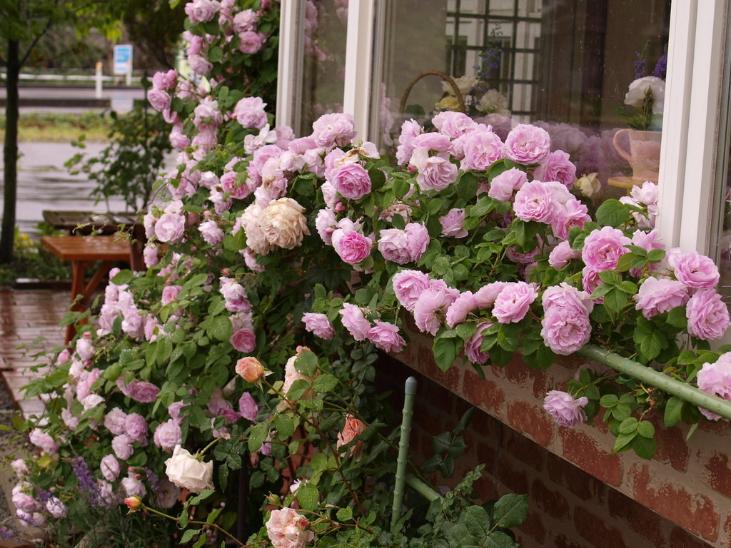 雨が降るとみんな重そうに頭を傾げています。それもかわいい!そして雨の空気とバラってほんとお似合い。