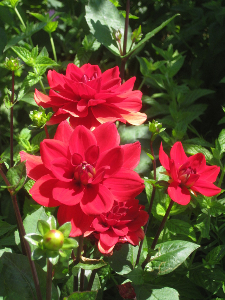 ずいぶんたくさんの花が立ち上がっていますね。葉が虫に食われてないのは消毒をしているのでしょうか?我が家のダリアは虫食いだらけです。