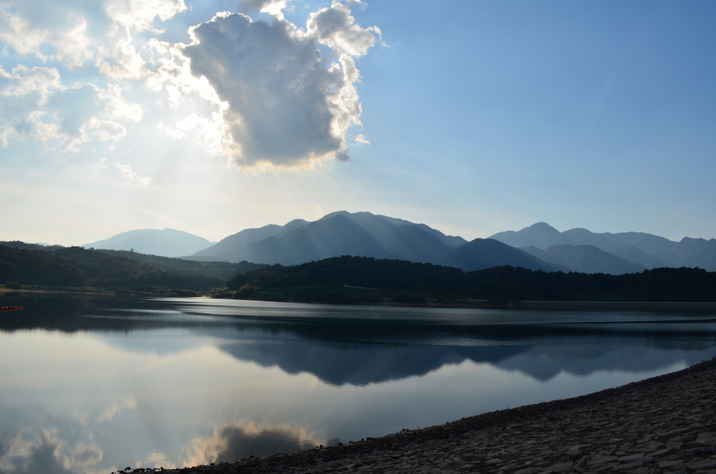 すばらしい所ですね。水に映し出された山にも太陽の陽が反射して とても気持ち良さそうな写真です。