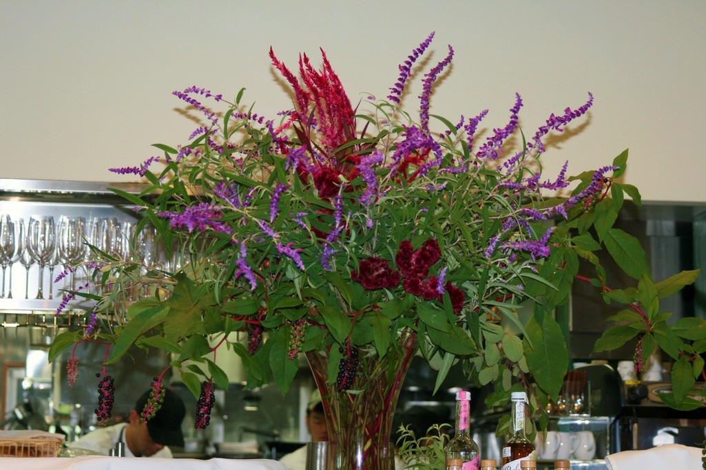すてきなアレンジですね!このセージ・・・こういう風にダイナミックにアレンジするとこんなにステキなんですね(*^^*) 黒く色づいた実と青い実が混ざってる所もオシャレですね~!