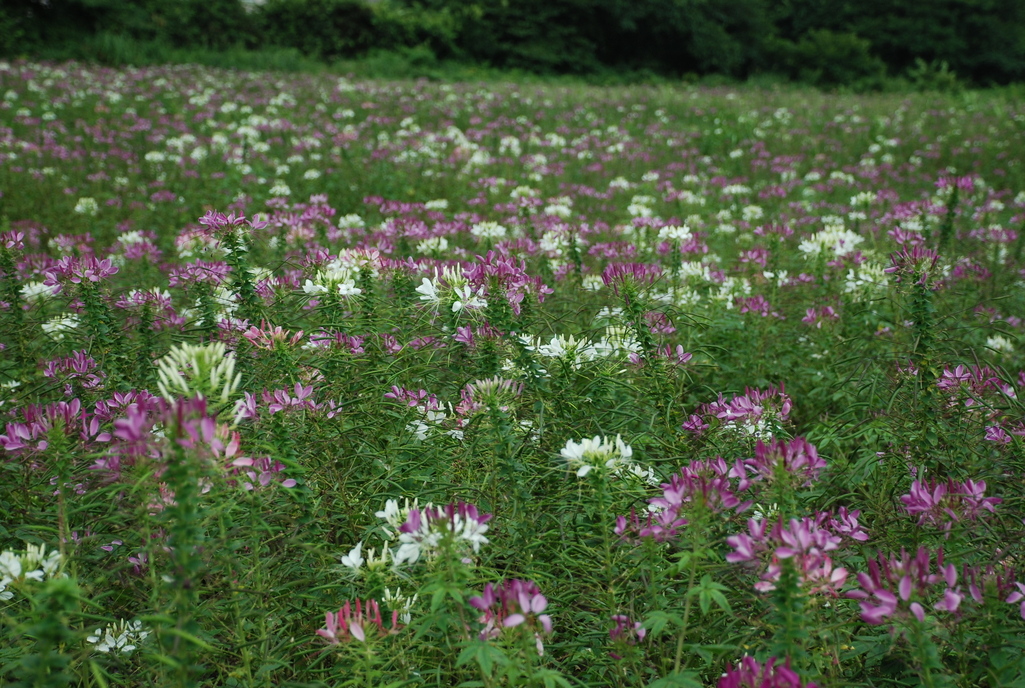 一面のクレオメ綺麗ですね。昔行った久住花公園のクレオメ畑を思い出しました。