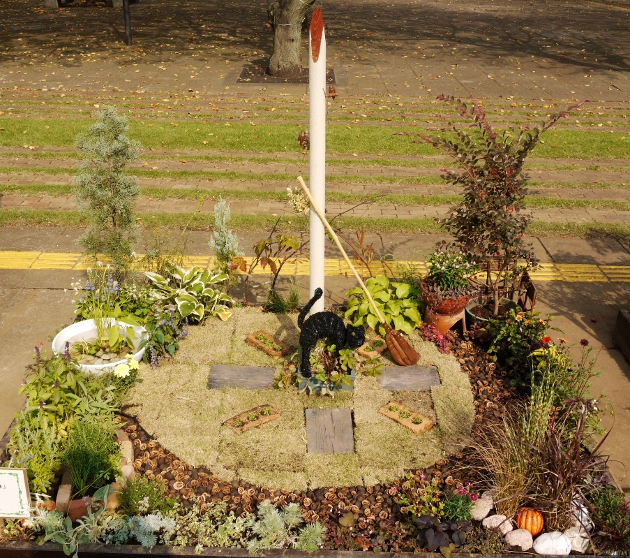 Joさんがおつくりになったのですか?昼と夜の庭を半分ずつにを分けるとは、面白いアイデアですね^^! マンションの庭などでこのままデザインとして使えそうですね~!