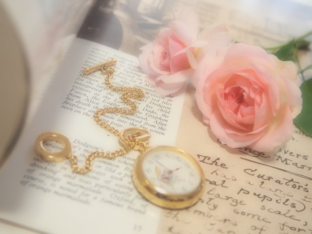 薔薇も懐中時計も素敵です!薔薇と英字は似合うのですね~