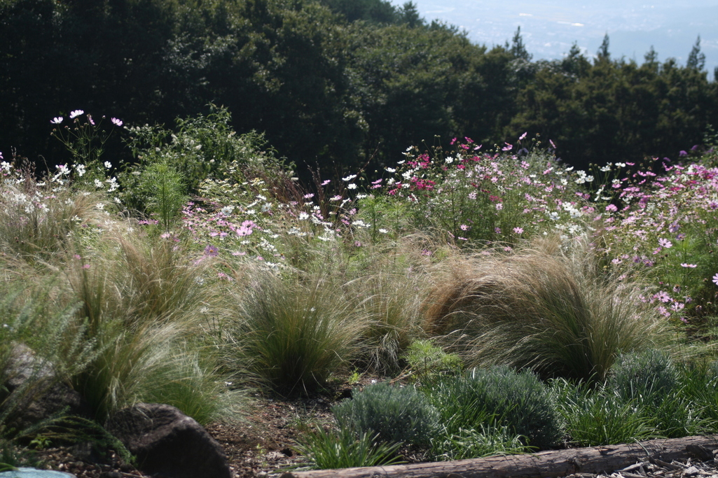 広い庭にはボリュームがあって花とのバランスが絶妙ですね。うちの庭は狭いのでグラス類は植えれません。