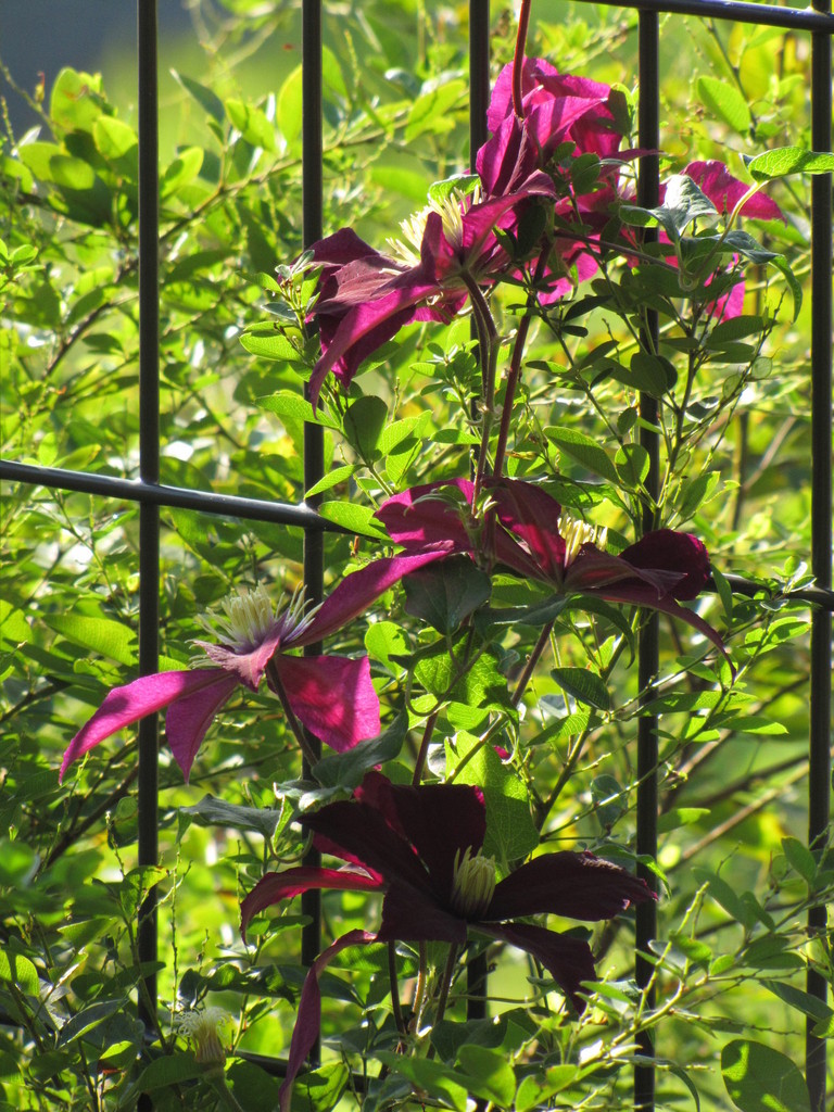クレマチスの赤と萩のピンクのコラボのはずが、萩は昨日の雨で散ってしまいました・・・><
