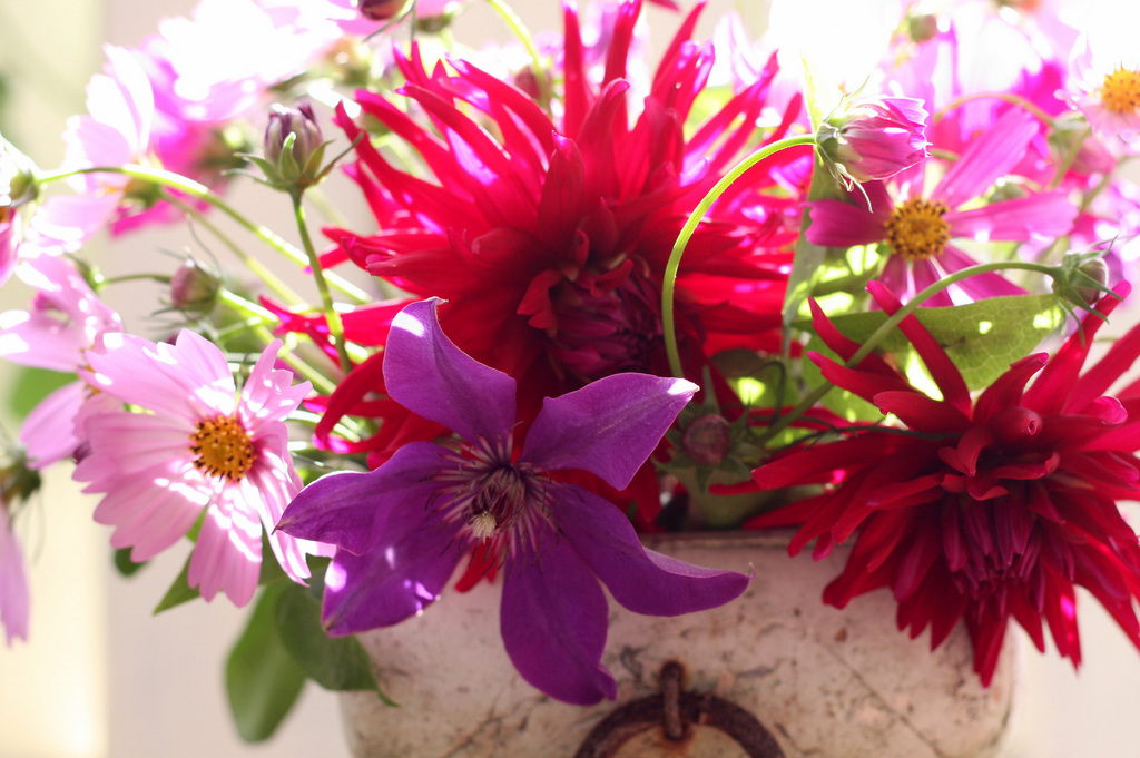 お庭の花だけでこのアレンジを作られたのですね。とっても華やかできれいです。