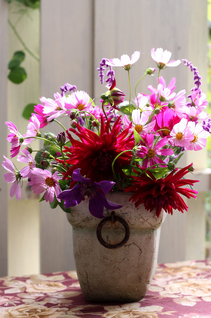 赤のダリアとピンクのコスモス。なんて贅沢な組み合わせでしょう。