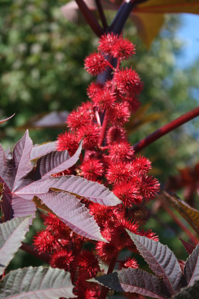 ジュンさん、ありがとうございます。どうやら銅葉ヒマか赤ヒマのようですね。昔下剤として飲まされた蓖麻子油って、この実からとった油だったのですね、勉強になりました。