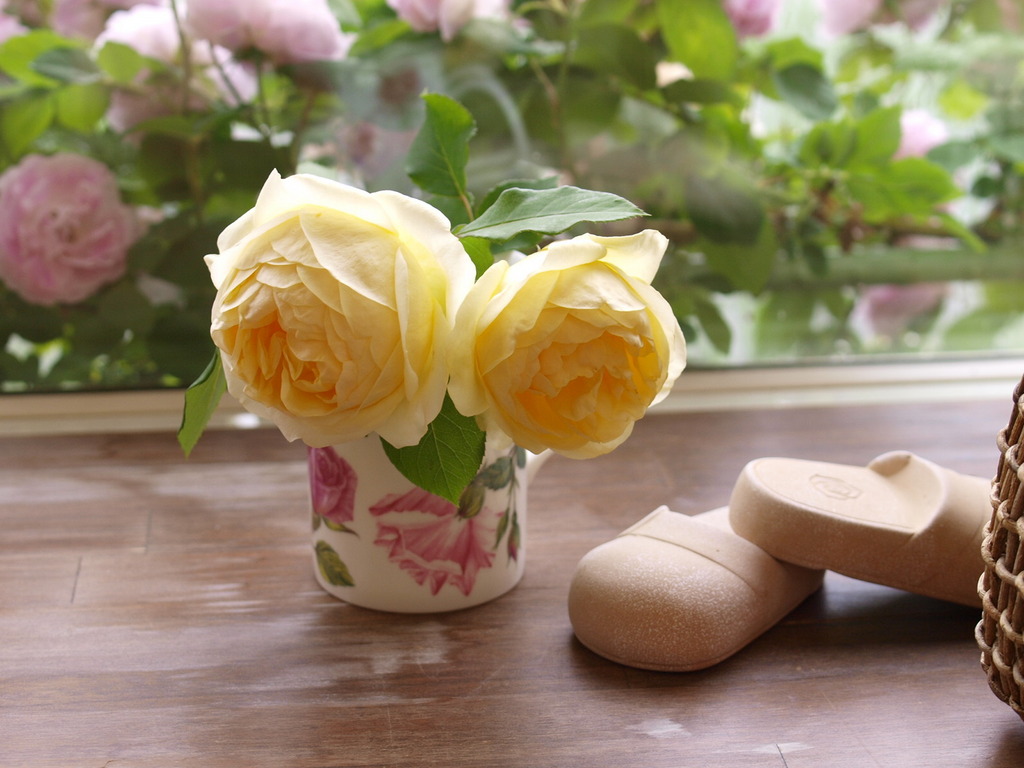 一目ぼれで買ったバラのマグカップは、コーヒーやお茶を入れて飲むのがもったいなくて花器になっちゃいましたw