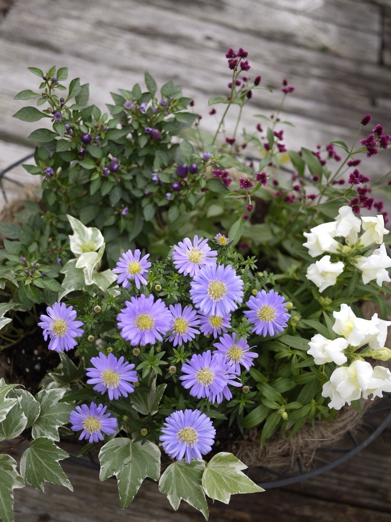 すてきな寄せ植えですね!私も紫の今日孔雀アスターを買いました(*^^*) お揃いです~♪
