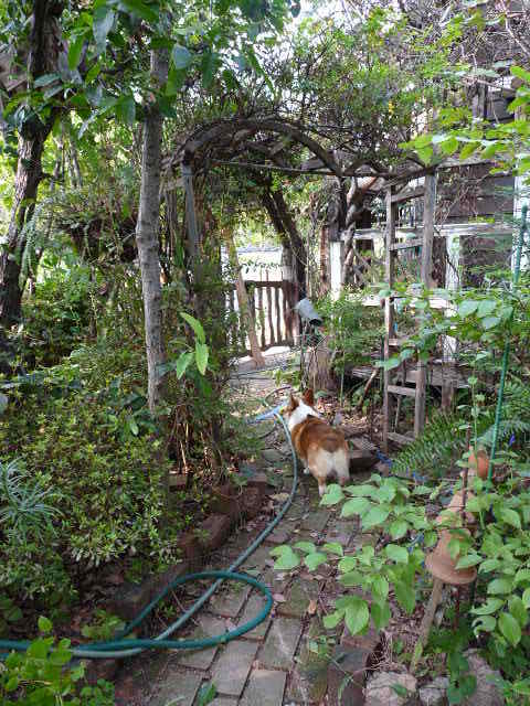 ハスキーなら気にもしないホースでもコーギーには難関なんですよね。(笑)